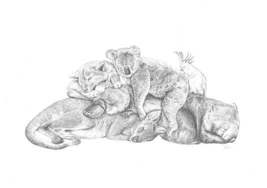 Snuggle Pile - Australian Animals - Fine Art Print