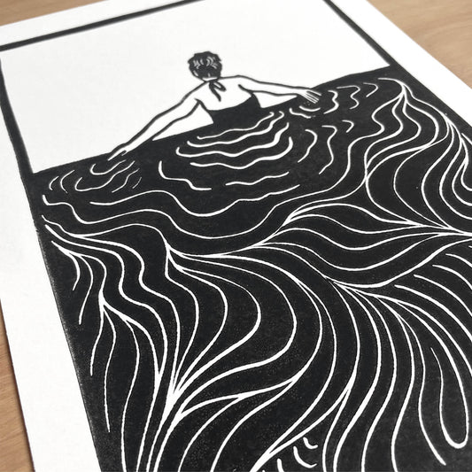 Surf Girl II - Waiting for Waves - Lino Block Print