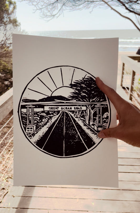 Great Ocean Road - Lino Block Print