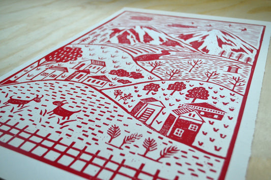 Little Village Lino Print - Red