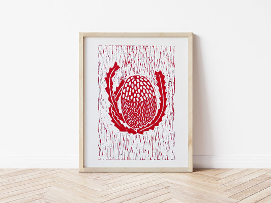 Red Lino Banksia print