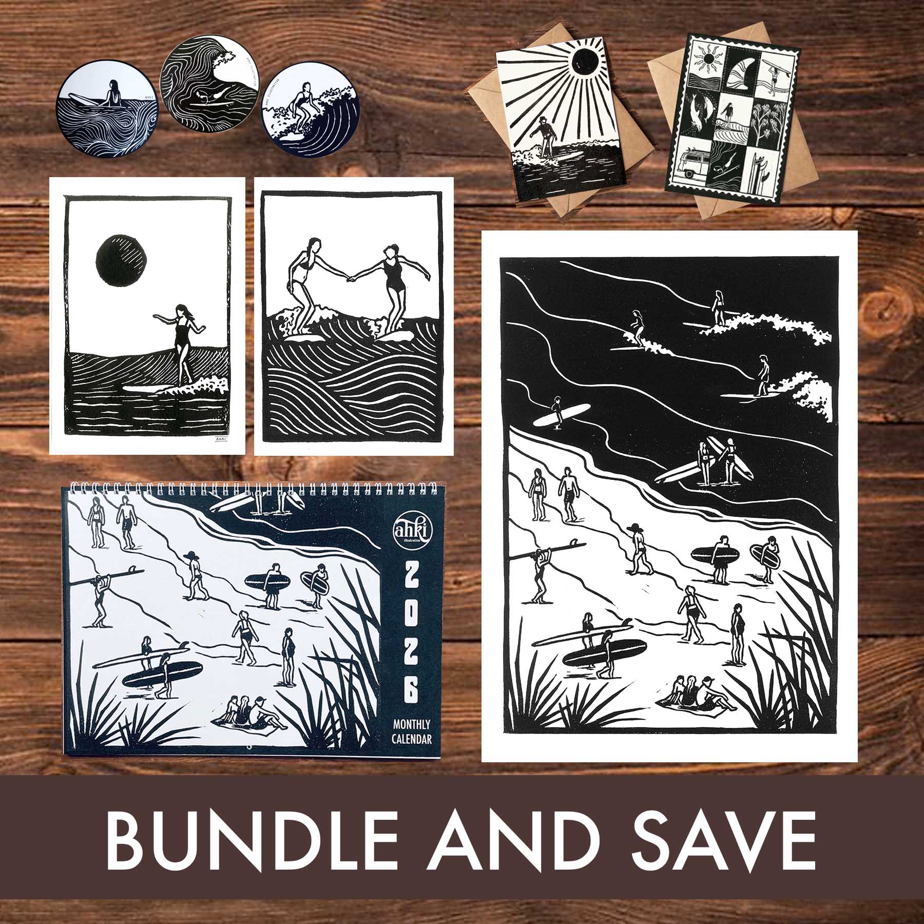 Each piece is hand-carved, printed, and designed on the Surf Coast, infused with that same coastal spirit that keeps us coming back to the sea.