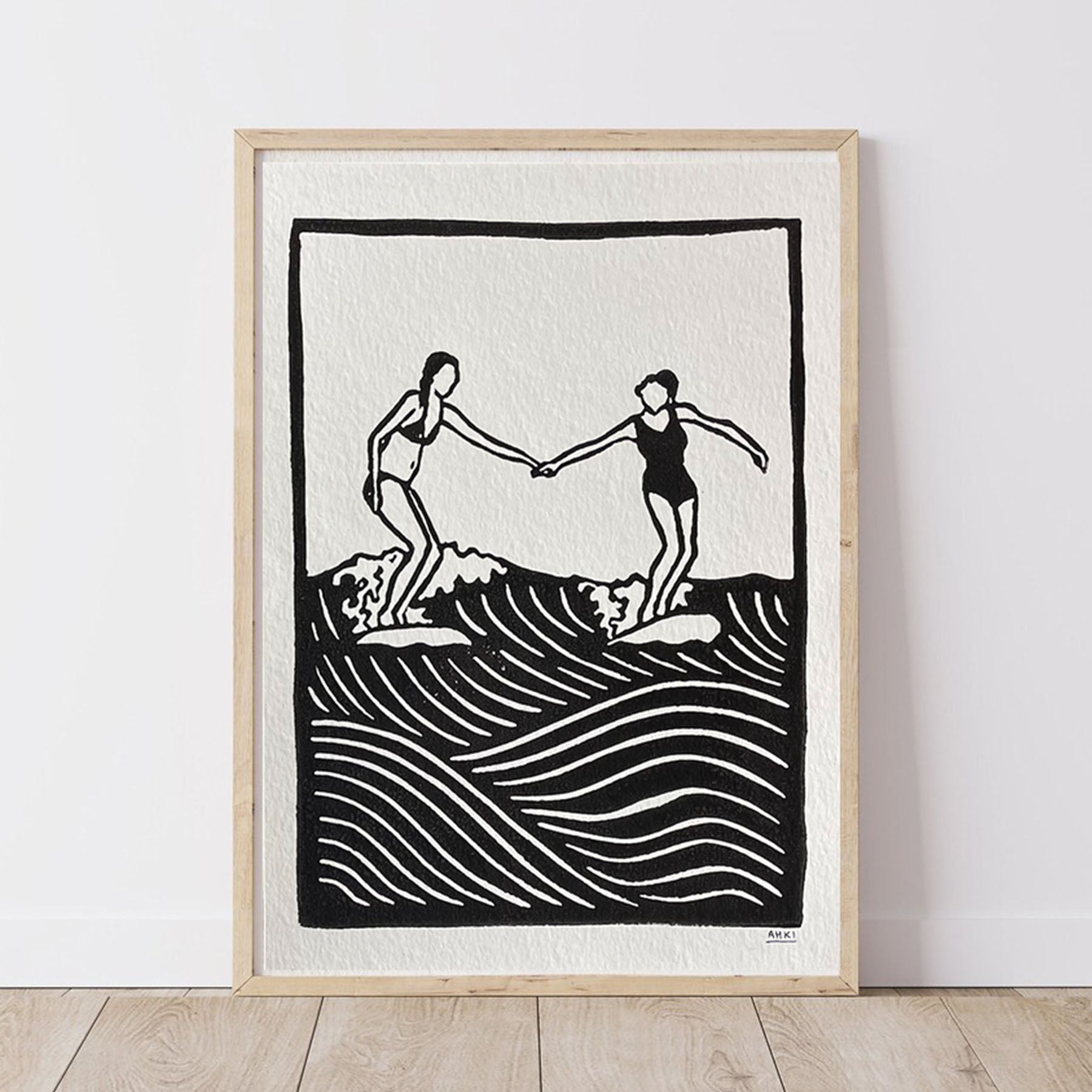 Keywords: surfer girl art, coastal home decor, surf print, handmade Australian art, ocean lover gift